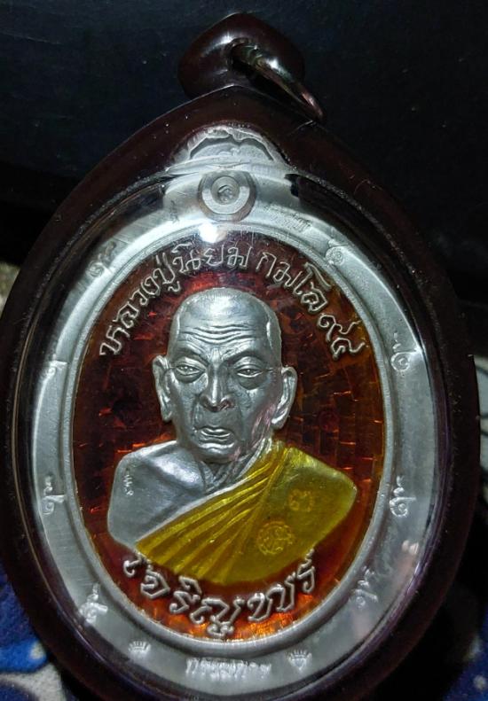 เหรียญเจริญพรเมตตามหานิยม หลวงปู่นิยม กมโล เนื้อเงินลงยาแดงไม่ตัดปีก หลังยันต์ ๙รอบ กรรมการ no ๑๖ วัดแจ้งนอก ปี 2555 (เลี่ยมพร้อมใช้) |