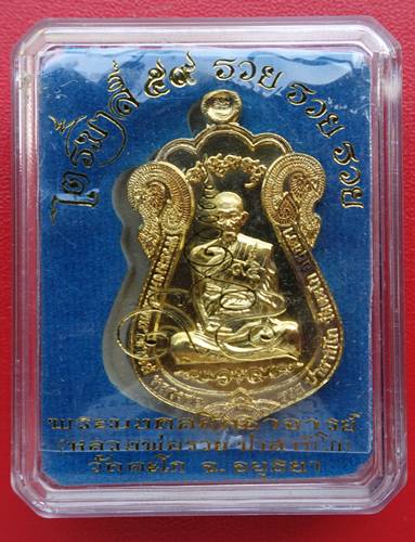 เหรียญไตรมาส ๕๙ รวย รวย รวย หลวงพ่อรวย วัดตะโก อยุธยา ปี 2559 เนื้อทองทิพย์+พิจารณารูปก่อนเสนอราคาประมูล