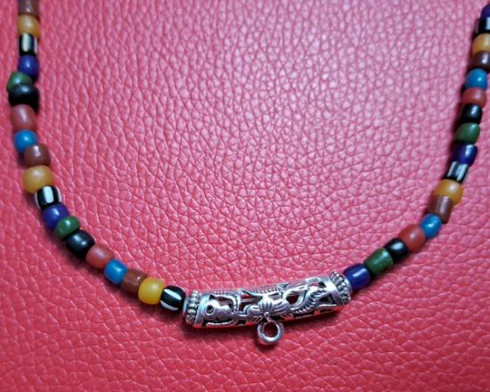 สร้อยคอลูกปัดทราวดี ลูกปัดโบราณสวยๆ ความยาว 24 นิ้ว สวมหัวได้หรือหมุนเกลียวทองเหลืองถอดออกก็ได้ สามารถห้อยพระได้ 1 องค์ (กท.17) |