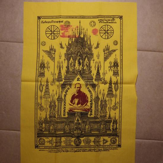 ผืนใหญ่..ขนาด19 X 29 นิ้ว... ผ้ายันต์ครอบจักรวาล 108 หลวงพ่อเกษม รุ่นพุทธคุณ ปี2538 เลข 549 ... 69.1.15 |