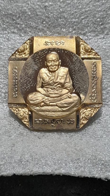 วัดใจเคาะเดียว......เหรียญแปดเหลี่ยมหลวงปู่ทวด รุ่นสมเด็จเจ้าฟ้ามหาจักรี สมเด็จพระเทพฯ จัดสร้างโดยสภากาชาดไทย ปี 46 เนื้อบรอนซ์นอกชุบทองขัดเงา ขนาด 2.5 ซม.ตอกโค๊ต"ดอกบัว"ที่ขอบเหรียญตลับพลาสติกเดิม |