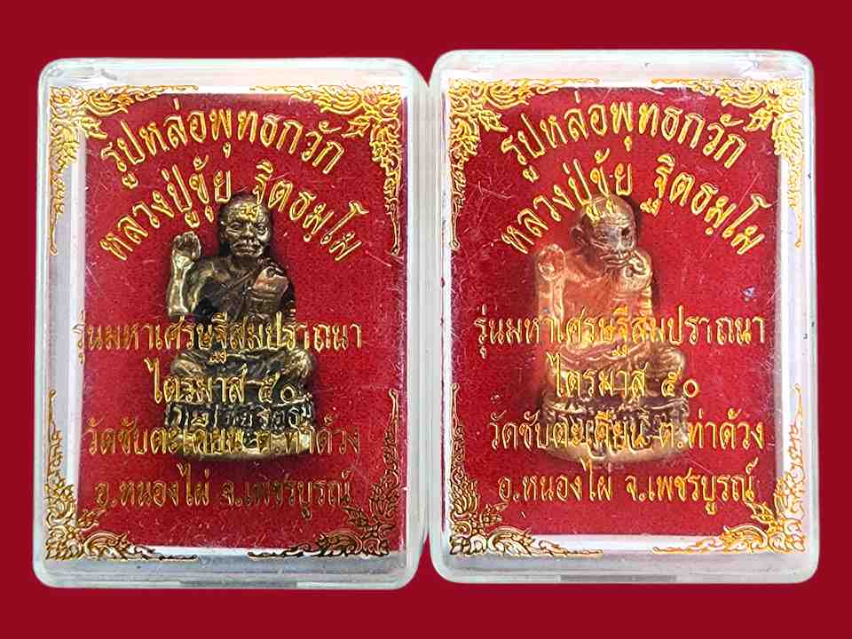 เคาะแรกแดง รูปหล่อพุทธกวักหลวงปู่ขุ้ยวัดซับตะเคียนรุ่นมหาเศรษฐีสมปรารถนาไตรมาสปี 50 มาพร้อมกล่องเดิมรวม 2 กล่อง พระสวยเดิมรับประกันตามกฎค่ะ |