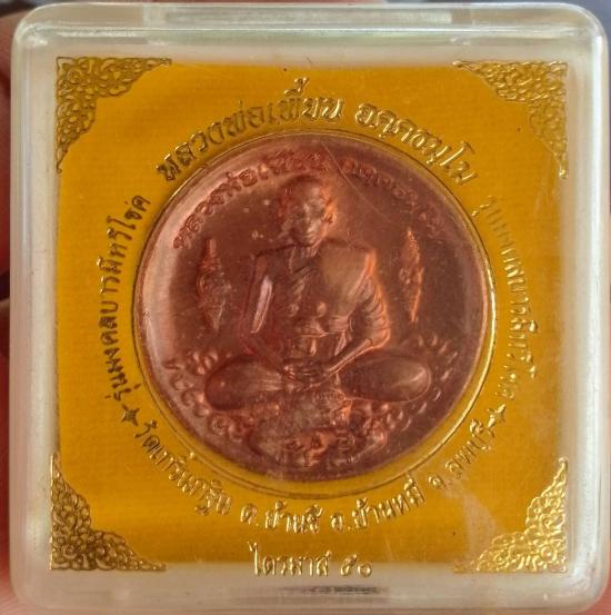 เหรียญบาตรน้ำมนต์ รุ่น มงคลบารมีทวีโชค หลวงพ่อเพี้ยน วัดเกริ่นกฐิน พิมพ์ใหญ่ ไตรมาส 50 พร้อมกล่องเดิม |