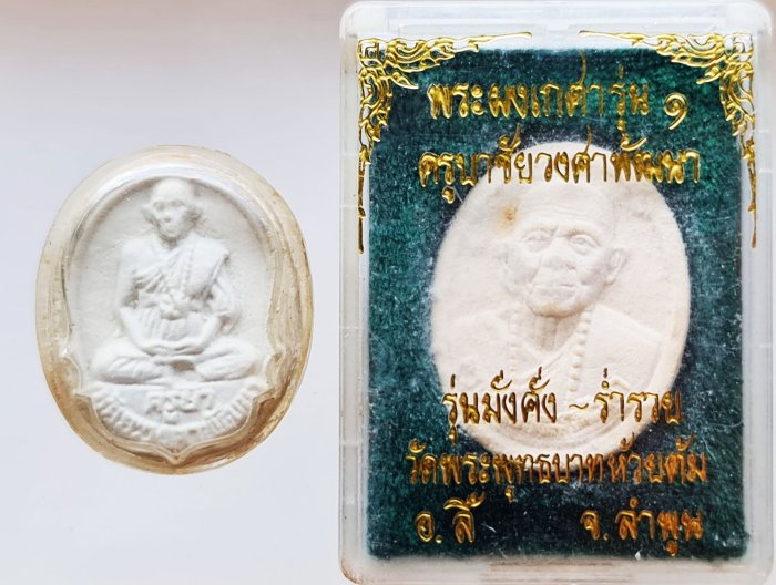 2. (แถม) พระผงเกศารุ่นแรก รุ่นมั่งคั่งร่ำรวย หลวงปู่ครูบาชัยยะวงศาพัฒนา วัดพระพุทธบาทห้วยต้ม อำเภอลี้ จังหวัดลำพูน เนื้อผงพระธาตุสีวลี ผงพุทธคุณ108 และผสมเกศาครูบาวงศ์ สภาพสวยพร้อมกล่องเดิม