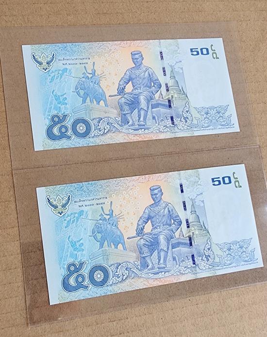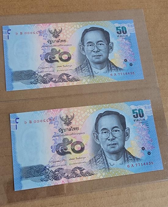 ให้จริง ธนบัตร ๕๐ บาท แบบ 16 (เลขเรียงติดกัน) จำนวน 2 ใบ สภาพใหม่ไม่ผ่านการใช้งานมาพร้อมพลาสติกใสครับ |