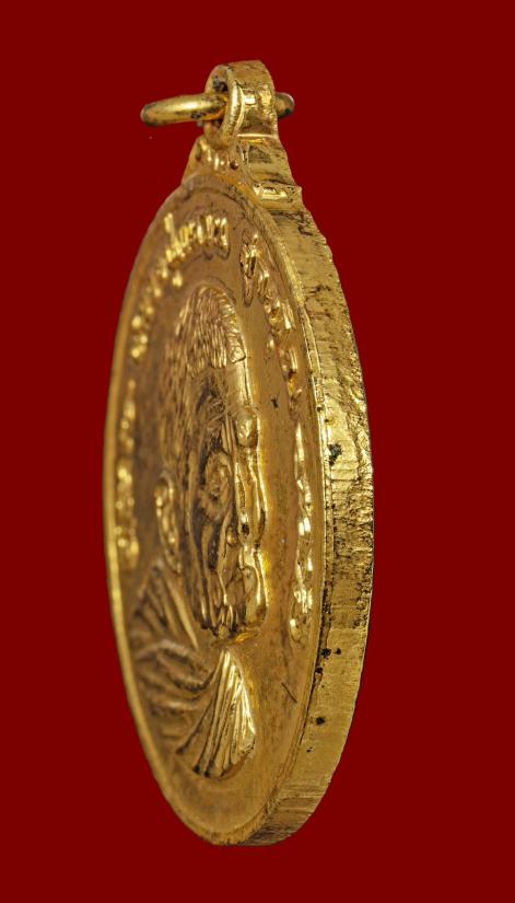 เหรียญชนะศึกเนื้อทองแดง กะไหล่ทอง ตอกโค๊ต หลวงปู่แหวน สุจิณฺโณ วัดดอยแม่ปั๋ง พ.ศ.2520