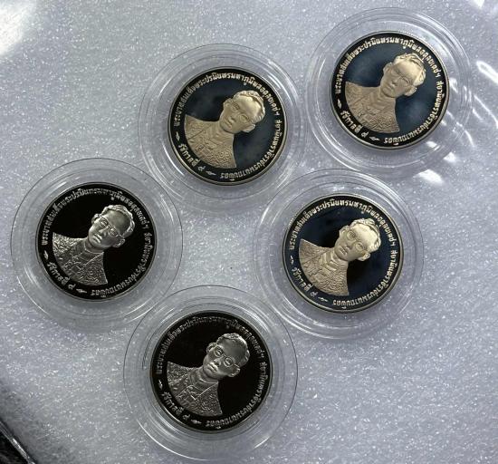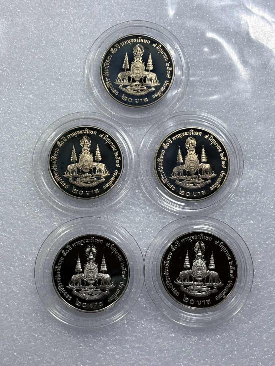 เหรียญ 20บาทขัดเงา ที่ระลึกงานฉลองสิริราชสมบัติครบ 50 ปี กาญจนาภิเษก จำนวน 5 เหรียญ