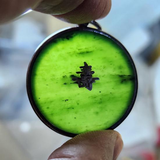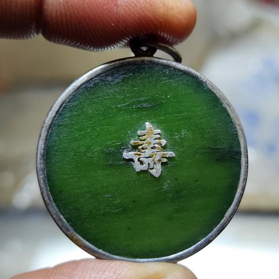 หยกเขียว เลี่ยมเงิน เส้นผ่านศูนย์กลาง 3.5 ซม |
