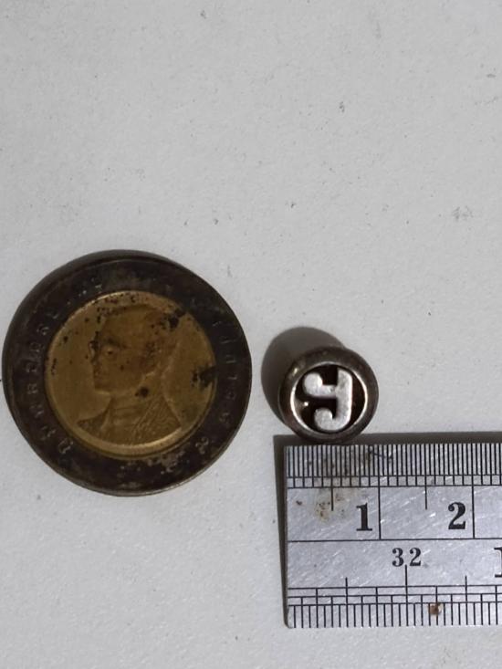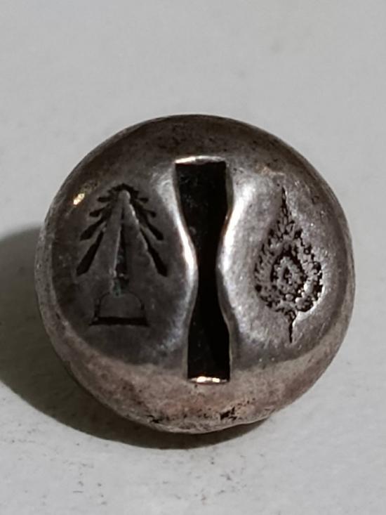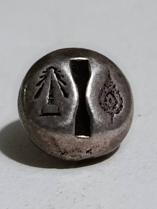 เนื้อเงินลงยา ด้านหลัง2โค๊ด ขนาดเส้นผ่าศุนย์กลางประมาณ1.2มม. จัดสร้างโดย พระราชวิสุทธิกวี (ท่านเจ้าคุณไมตรี)