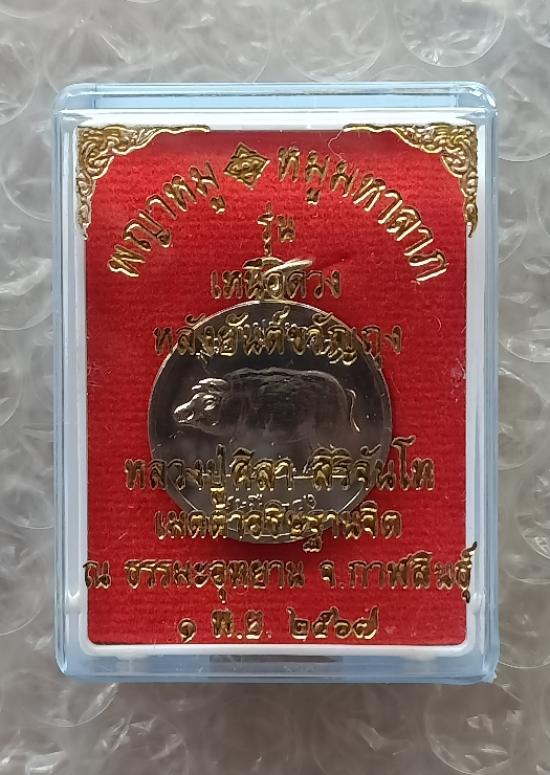 หลวงปู่มหาศิลา สิริจันโท ธรรมอุทยาน จ.กาฬสินธุ์ พญาหมูมหาลาภ รุ่น เหนือดวงหลังยันต์ขวัญถุง เนื้ออัลปาก้า |