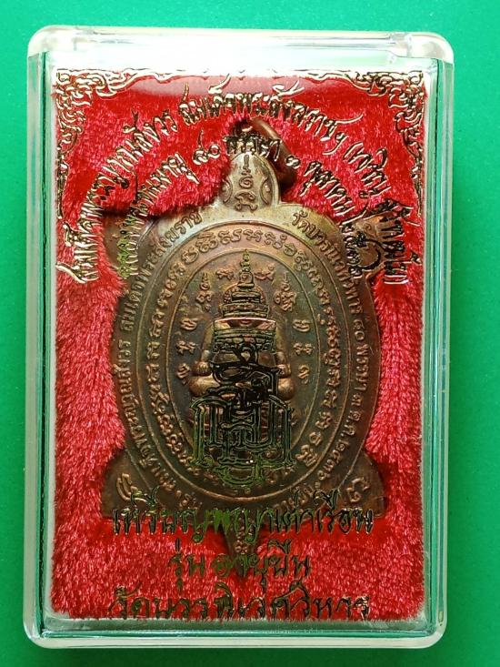 พญาเต่าเรือน รุ่นอายุยืน ฉลองพระชนมายุ ๘๐ พรรษา ๓ ตุลาคม ๒๕๓๖ เนื้อทองแดงผสมชนวนพระสังกัจจายน์ญส.ปี ๒๕๓๐ (พระสังกัจจายน์ญส.รุ่นแรก ปี ๒๕๓๐ เป็นรุ่นสำคัญมีส่วนผสมของชนวนพระกริ่งบวรรังสี ๒๕๒๘ และชนวนพระกริ่งปวเรศ ๒๕๓๐ ล้วน ๆ โดยไม่มีชนวนพระรุ่นอื่นเจือปนเลย) พิธีพุทธาภิเษก-ชัยมังคลาภิเษก ณ พระอุโบสถวัดบวรนิเวศวิหาร หลวงปู่หลิว ปณฺณโก วัดไร่แตงทอง เทพเจ้าแห่งพญาเต่าเรือน ร่วมปลุกเสกในพิธี หลวงพ่อเปิ่น หลวงพ่อแย้ม วัดสามง่าม หลวงพ่อพูล วัดไผ่ล้อม หลวงพ่อไสว วัดปรีดาราม หลวงพ่อแช่ม วัดดอนยายหอม หลวงพ่อยิด วัดหนองจอก หลวงพ่อสง่า วัดบ้านหม้อ ฯลฯ ร่วมพิธี เคาะเดียว พระมาพร้อมกล่องเดิม