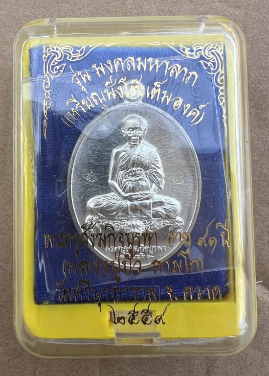 ***เคาะเดียวแดง***เหรียญนั่งโต๊ะหัวเสือ ปี59 เนื้อเงิน หมายเลข714 กล่องเดิม ***ราคาจองออกวัด2,000บาท**