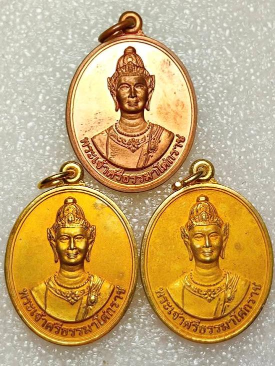 เคาะเดียวแดง ....เหรียญพระเจ้าศรีธรรมโศกราช วัดพระมหาธาตุวรมหาวิหาร จ.นครศรีธรรมราช พ.ศ.2546 เนื้อทองแดงขัดเงาและเนื้อกะไหล่ทองพ่นทรายปัดเงาบางส่วน |