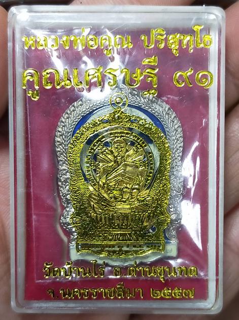 เหรียญนั่งพาน รุ่นคูณเศรษฐี 91 เนื้ออัลปาก้าลงยาหน้ากากทองระฆัง สภาพสวยๆ ซีลเดิมกล่องเดิม