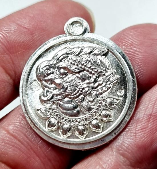 เหรียญหนุมานมหาปราบไตรจักร ลป .บุญ วัดปอแดง ปี59 เนื้อเงินไม่ตัดปีกกรรมการหลังเรียบ มีจาร หมายเลข8 |