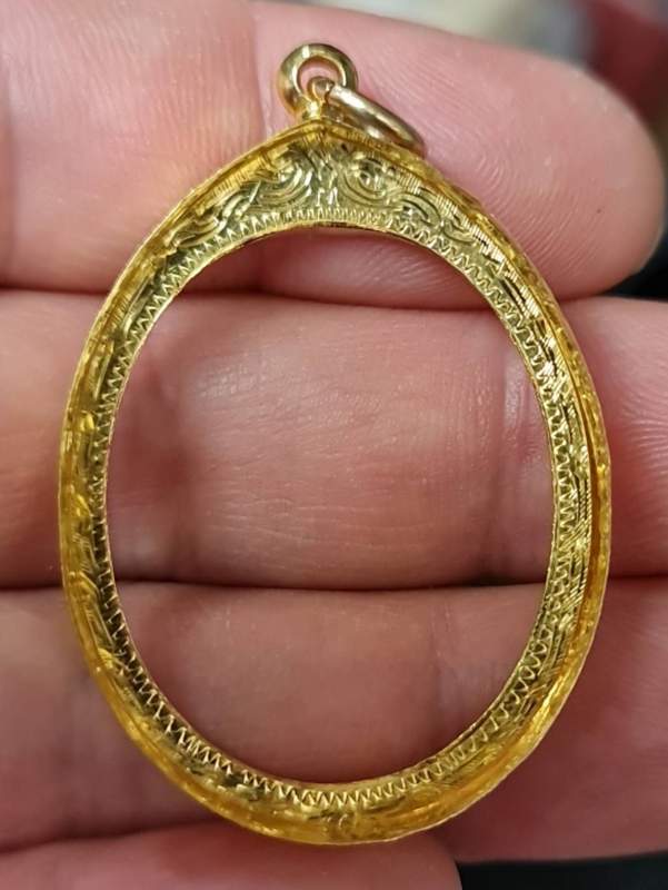 (((กรอบมือ2 ทองคำแท้)))สำหรับเหรียญรูปไข่คณาจารย์ทั่วไป น้ำหนักทอง 2.90กรัม กรอบสภาพสวยๆครับ |