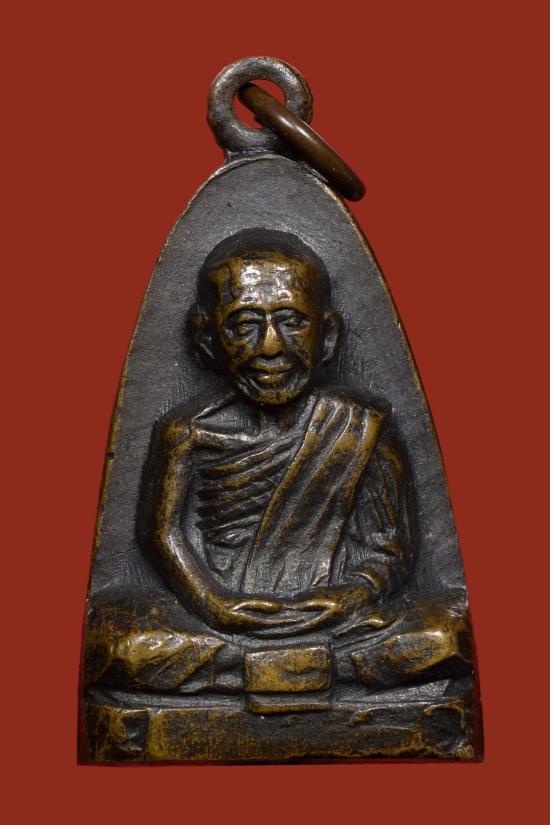 เหรียญปั๊มพิมพ์เตารีดเล็ก หลังหนังสือ หลวงพ่อสีทันดร วัดนาท่วม จ.ตรัง ปี 2506 นิยมมีหูมีเม็ดตา