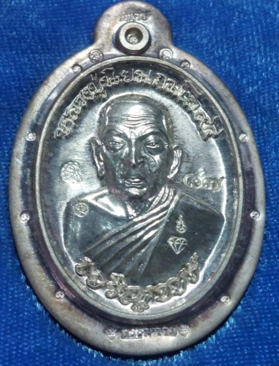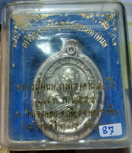 เหรียญเจริญพรเมตตามหานิยม หลวงปู่นิยม กมโล เนื้อเงินไม่ตัดปีก หลังแบบ ๙รอบ กรรมการ no ๘๗ วัดแจ้งนอก ปี 2555