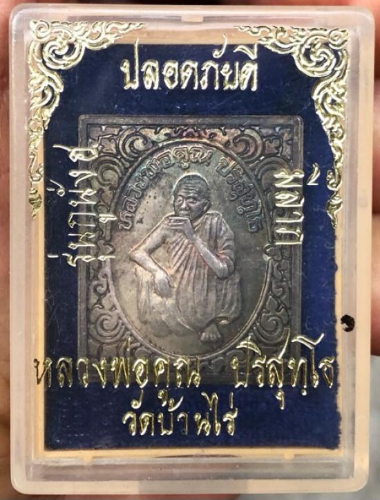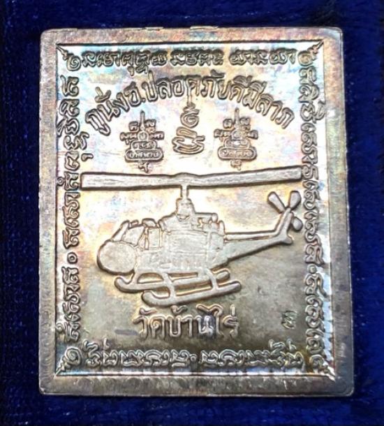 หลวงพ่อคูณ เหรียญแสตมป์เนื้อเงิน กูนั่ง ฮ. ปลอดภัยดีมีลาภ ปี37 พร้อมกล่อง สวยๆ