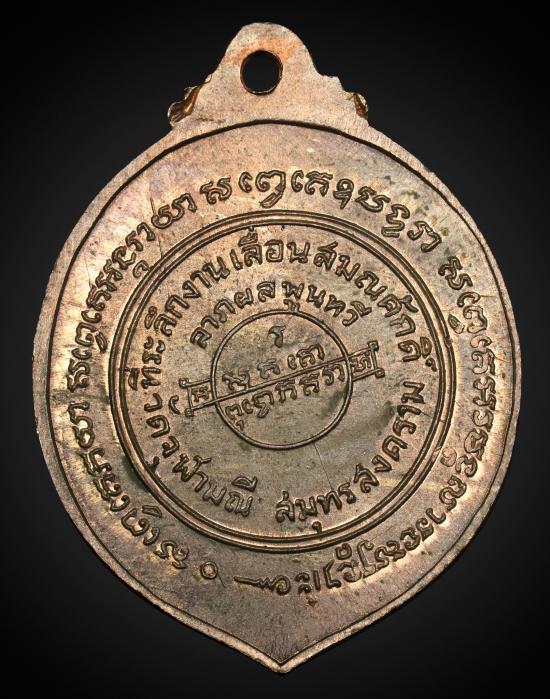 ด้านหลัง: อักขระยันต์ศักดิ์สิทธิ์ พร้อมระบุปีสร้าง พ.ศ. 2517
