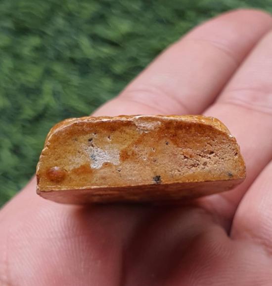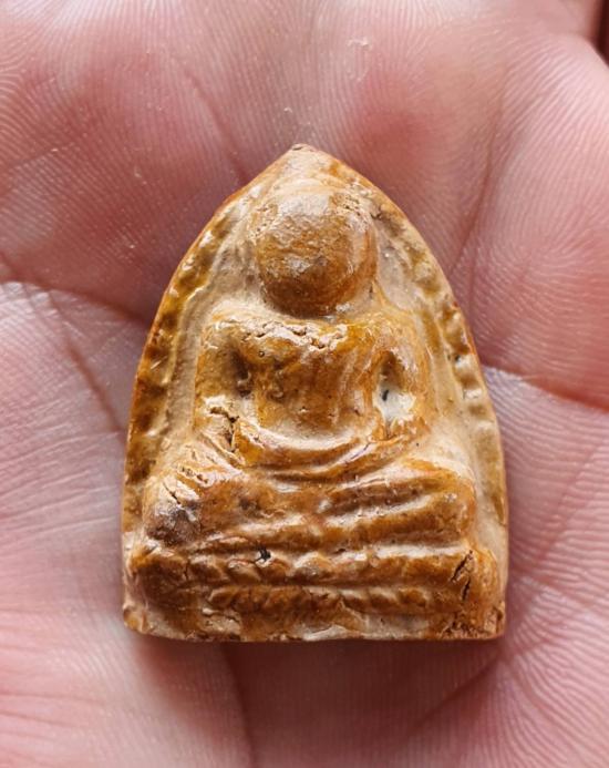 พระสภาพสวย มีขนาดสูง 3.7 x 2.8 ซ.ม. ผิวเคลือบทาด้วยยางไม้มาเดิมๆ