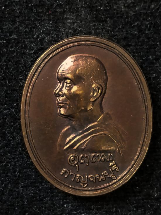 เหรียญหลวงพ่ออุตตมะ หลังหลวงพ่อดำ วัดตะคร้ำเอน จ กาญจนบุรี ปี 2538