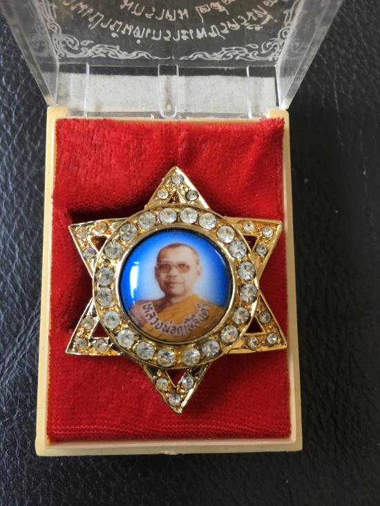 เข็มกลัดประดับเพชร หลวงพ่อฤษีลิงดำ วัดท่าซุง จังหวัดอุทัยธานี งานเป่ายันต์เราะเพชรครั้งที่ 7 ปี 2530 |