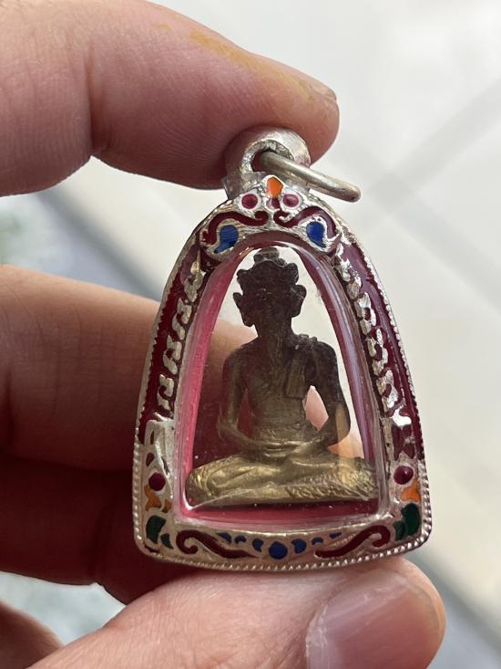 รูปหล่อพระฤาษี รุ่นแรก พ่อท่านห้อง วัดเขาอ้อ พัทลุง ปี2558 พร้อมกรอบเงินแป๊ะตั๋ง