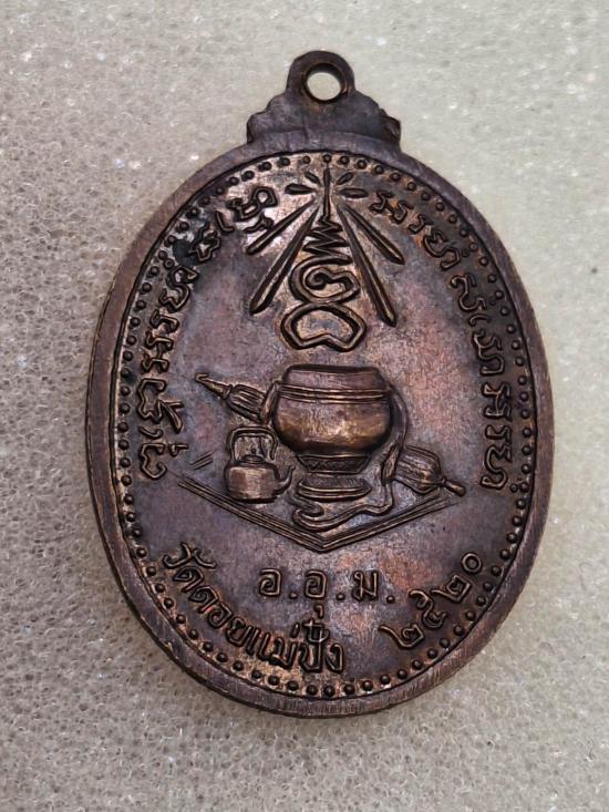 เหรียญหลวงปู่แหวน สุจิณฺโณ วัดดอยแม่ปั๋ง ปี 2520 พิมพ์รูปไข่ นั่งสมาธิเต็มองค์ |