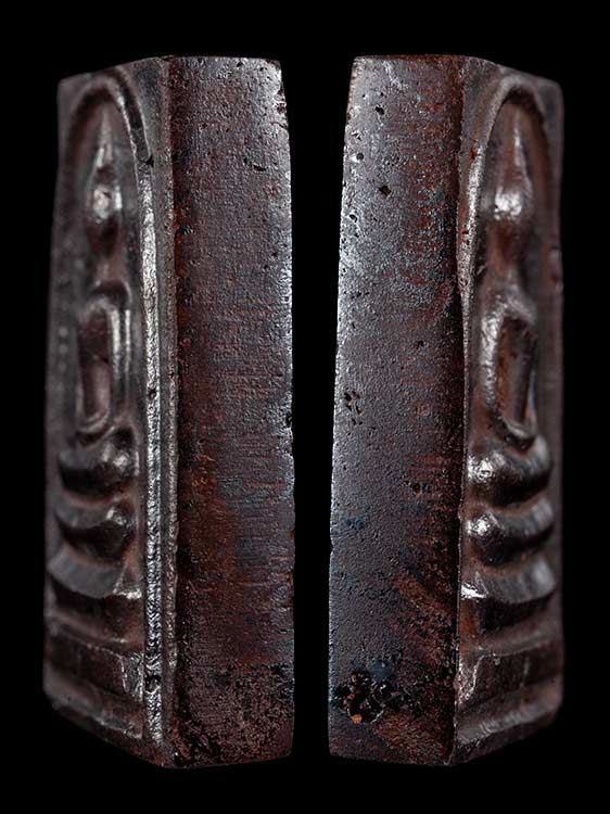 แร่เหล็กไหลแม่น้ำโขงหรือแร่ฮีมาไทท์ HEMATITE เป็นแร่ธาตุที่หาได้ยากและมีอำนาจมหาศาล พุทธคุณหรือคุณวิเศษมีอยู่ในตัวทั้งในด้านคุณเสน่ห์ และ เมตตามหานิยม ความแคล้วคลาดปลอดภัยโดยเฉพาะอย่างยิ่งในด้านโชคลาภร่ำรวยขึ้นทันตาแบบไม่ น่าเชื่อ จึงเป็นที่ต้องการของผู้ได้พบ เพราะมีความเชื่อว่าเป็นแร่ที่มีอาถรรพ์อยู่ได้เฉพาะผู้ที่ทีบุญบารมีมาแต่ อดีตชาติเท่านั้น องค์นี้แกะจากช่างที่มีความชำนาญเป็นพิเศษ เนื้อเป็นเนื้อแร่เหล็กไหลธรรมชาติ มีที่เดียวในลำน้ำโขง ลักษณะองค์พระงดงามมากทั้งด้านหน้าและด้านหลัง