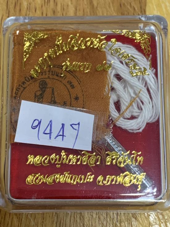 เนื้อเงินกำลังขึ้น ตะกรุดปั้มจีวรหัวใจเศรษฐี รุ่นแรก 77 หลวงปู่ศิลา ศิริจันโท ยุคต้น จ.กาฬสินธุ์ เนื้อเงิน ได้ครบทั้ง 3 รายการ ตะกรุดเงิน ,จีวร ,สายสิญจน์ ตอกโค๊ด เลขสวย 9447 สวยมาก กล่องเดิมครับ