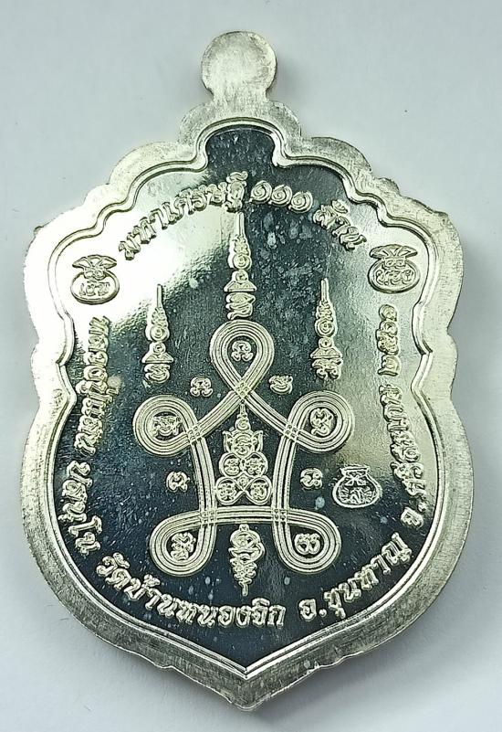 ชื่อพระเครื่อง เหรียญเสมาหัวเสือ มหาเศรษฐี111ล้าน หลวงปู่แสน บ้านหนองจิก เนื้อเงินลงยาขอบ 2 สี เบอร์ 17 พร้อมกล่องเดิมครับ (เหรียญหนัก18.48 กรัม)
