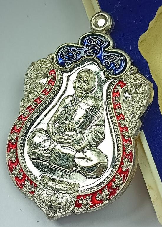 รายละเอียด เหรียญเสมาหัวเสือ มหาเศรษฐี111ล้าน หลวงปู่แสน บ้านหนองจิก เนื้อเงินลงยาขอบ 2 สี เบอร์ 17 พร้อมกล่องเดิมครับ (เหรียญหนัก18.48 กรัม)