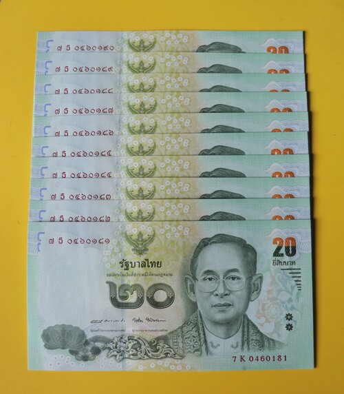 "เคาะเดียว" ธนบัตรแบงค์ 20 บาท แบบ 15,แบบ 16 และแบบ 16.5 เลขเรียงอย่างละ 10 ฉบับ unc |