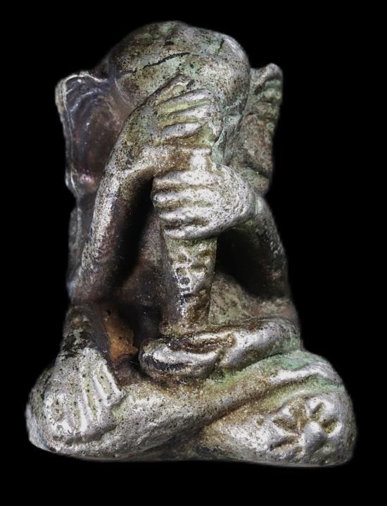 ปิดตาพระพิฆเนศ ตอกดอกจันทร์ ศิลปนครศรีธรรมราช เนื้อสำริดเงิน |