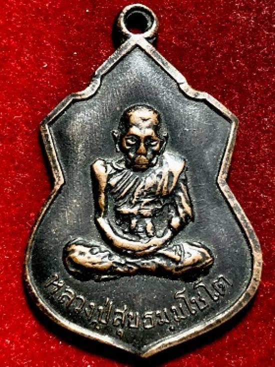 เหรียญหน้าโลห๋ใหญ่ หลวงปู่สุข วัดโพธิ์ทรายทอง จ.บุรีรัมย์ พ.ศ. ๒๕๑๔