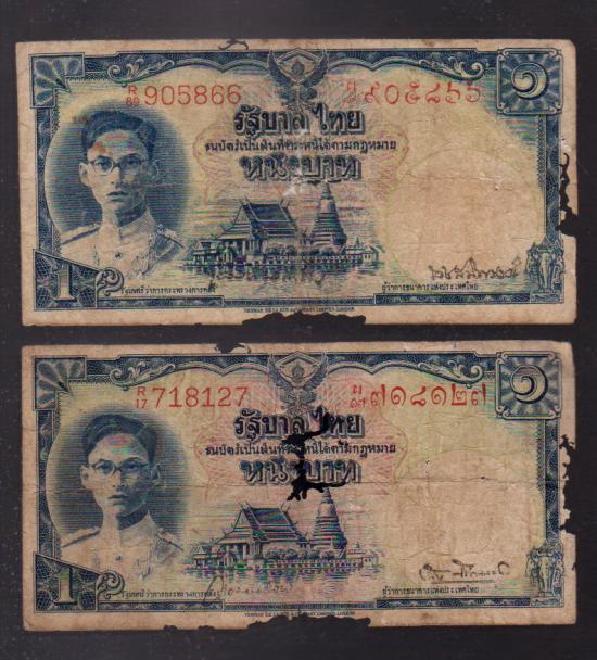 ## ธนบัตร 1 บาท ## โทมัส ## หน้าหนุ่ม## เลขแดง ## 2 ฉบับ ##