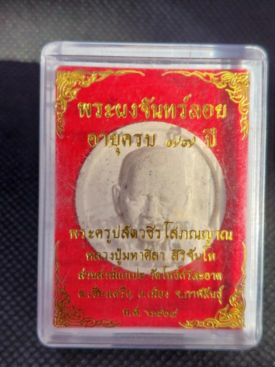 พระผงจันทร์ลอย อายุครบ 77 ปี หลวงปู่ศิลา สิริจันโท เนื้อขาวผงพุทธคุณ หมายเลข 19 181