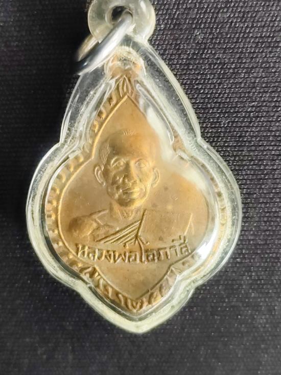 เหรียญหลวงพ่อโอภาสี อาศรมบางมด พิมพ์พุ่มข้าวบิณฑ์ เนื้อทองแดงกะไหล่ทอง ปี 2497 กรุงเทพฯ เลี่ยมพร้อมห้อยคอ |
