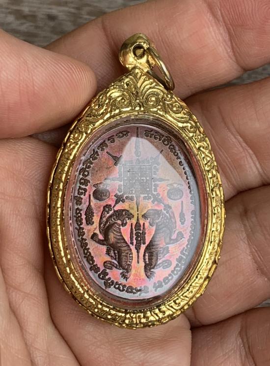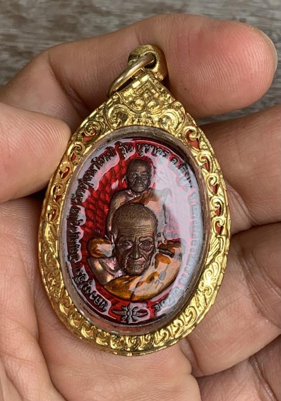 เหรียญรุ่นบูชาครู หลวงปู่อิ่ม วัดทุ่งนาใหม่ จังหวัดนครศรีธรรมราช ปี 2564 เลข 336 พร้อมเลี่ยมบูชา เนื้อทองแดงมันปูลงยาแดง |