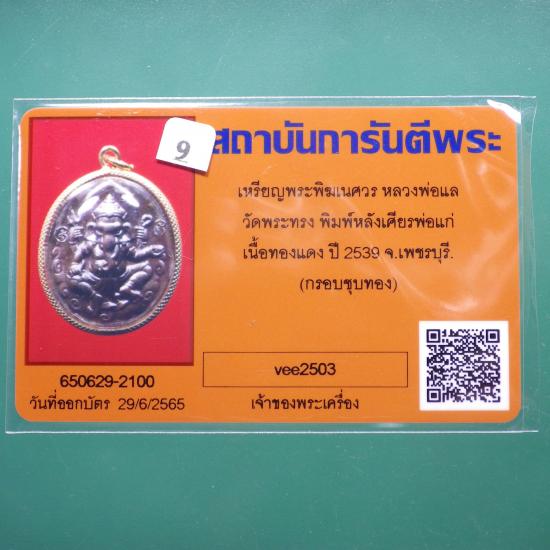 เหรียญพระพิฆเนศ หลังพ่อแก่ หลวงพ่อแล วัดพระทรง จ.เพชรบุรี เนื้อทองแดงรมดำ ปี 2539... ..9..(68.4.15 |