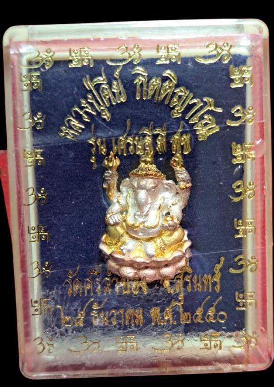รุ่น เศรษฐีมีสุข หลวงปู่คีย์ วัดศรีลำยอง จ.สุรินทร์ ปี 2550 เนื้อเงิน 3K สวยมาก มาพร้อมกล่องเดิม |