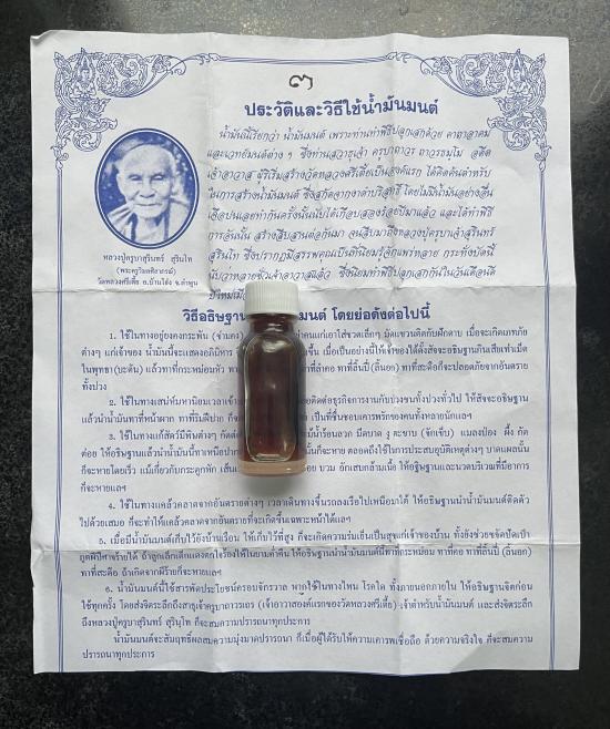 น้ำมันนี้เรียกว่า "น้ำมันมนต์" เพราะท่านทำพิธีปลุกเสกด้วย