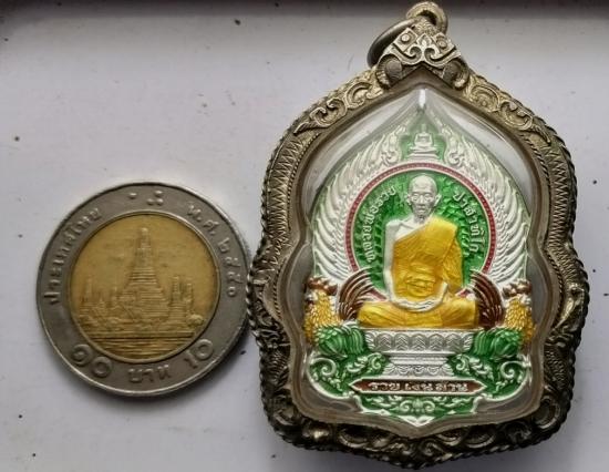เหรียญหลวงพ่อรวย รุ่นรวยเงินล้าน สร้างที่วัดปราสาท นนทบุรี เนื้อเงินลงยาร้อนสีเขียว มีโค๊ด+เลข2หลัก44 เลขสวยครับ พร้อมเลี่ยมเงินปี2564
