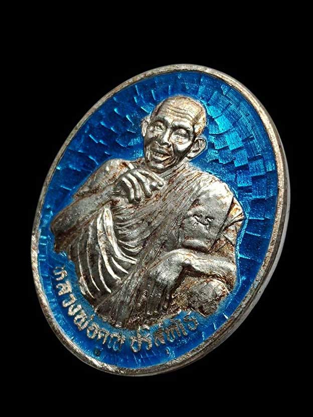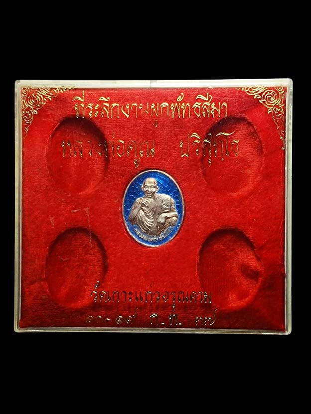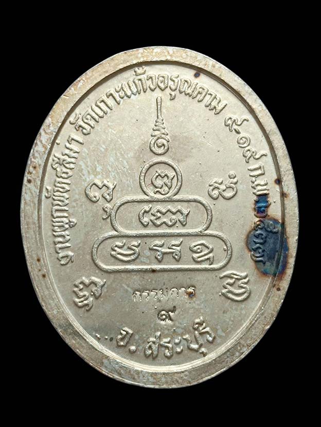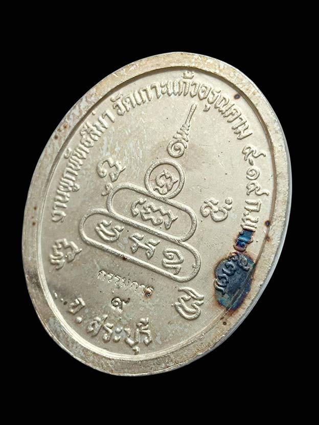 เหรียญหลวงพ่อคูณ ออกวัดเกาะแก้วอรุณคาม แยกจากชุดกรรมการ (เบอร์ 9) เนื้อเงิน ลงยาสีฟ้า (น้ำหนักเหรียญ 12.0 กรัม) ปี พ.ศ.2537 หลวงพ่อคูณ วัดบ้านไร่ ปลุกเสก พร้อมกล่อง