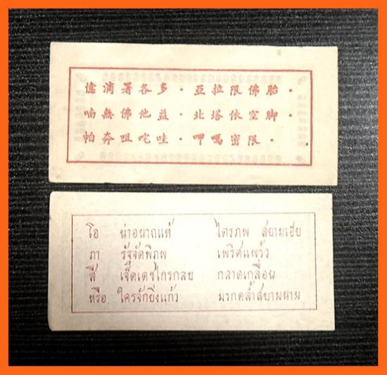 เก่าถึงยุค-นิยม หลังภาษาไทย+จีน 2แผ่น-150-กระดาษยันต์กันภัย หลวงพ่อโอภาสี (หายาก ขนาดประมาณ*9.5+5 ซม.* |