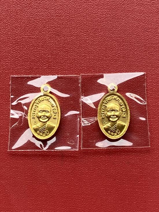 เคาะเดียวแดง เม็ดแตง 2องค์หลวงปู่ทวด รุ่น102ปีอาจารย์ทิม เนื้อชุบทองลงยาสีธงชาติ |