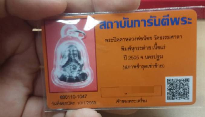 ปิดตาหลวงพ่อน้อยวัดธรรมศาลาพิมพ์หูกระต่ายเนื้อแร่ปี2505จ.นครปฐมเลี่ยมพร้อมใช้