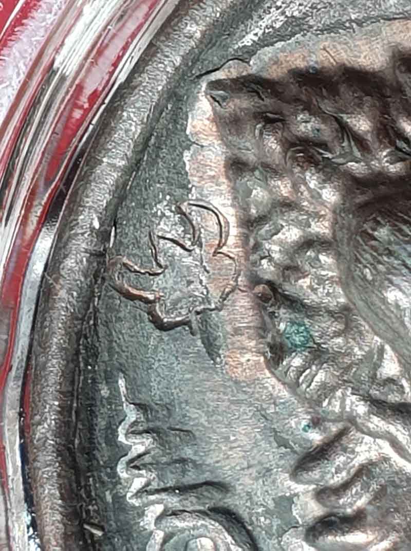 ด้านหลังเป็นพญาครุฑและพระราหู 8 ทิศ พิธีศักดิ์สิทธิ์...พิธียิ่งใหญ่ เนื้อนวะโลหะ ขนาด 3 ซ.ม. เลข 490