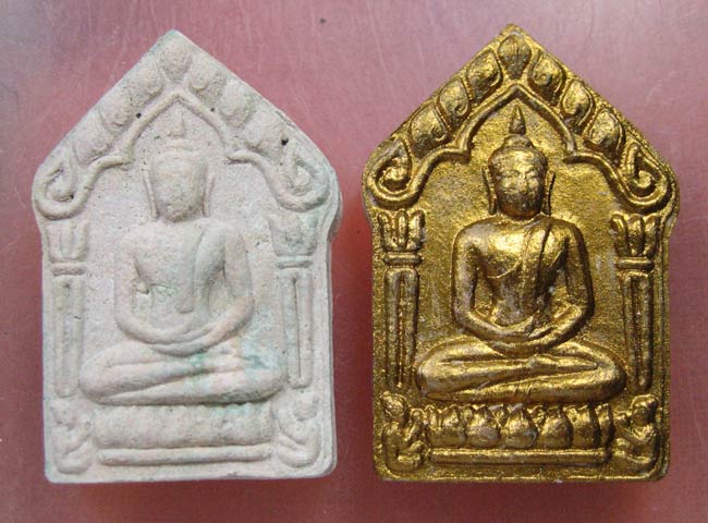 พระขุนแผนผงพรายกุมาร ที่ระลึกพิธีฉลองกุฎิ เนื้อชมพู ปี ๒๕๕๓ ไม่ทาทอง หมายเลข ๑๒๒๘๔ และทาทอง หมายเลข ๗๐๔๖ พร้อมกล่องเดิมๆ